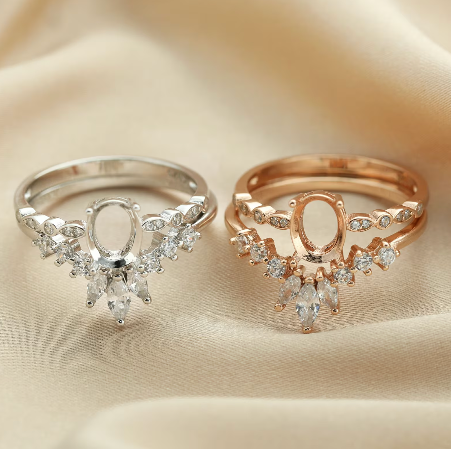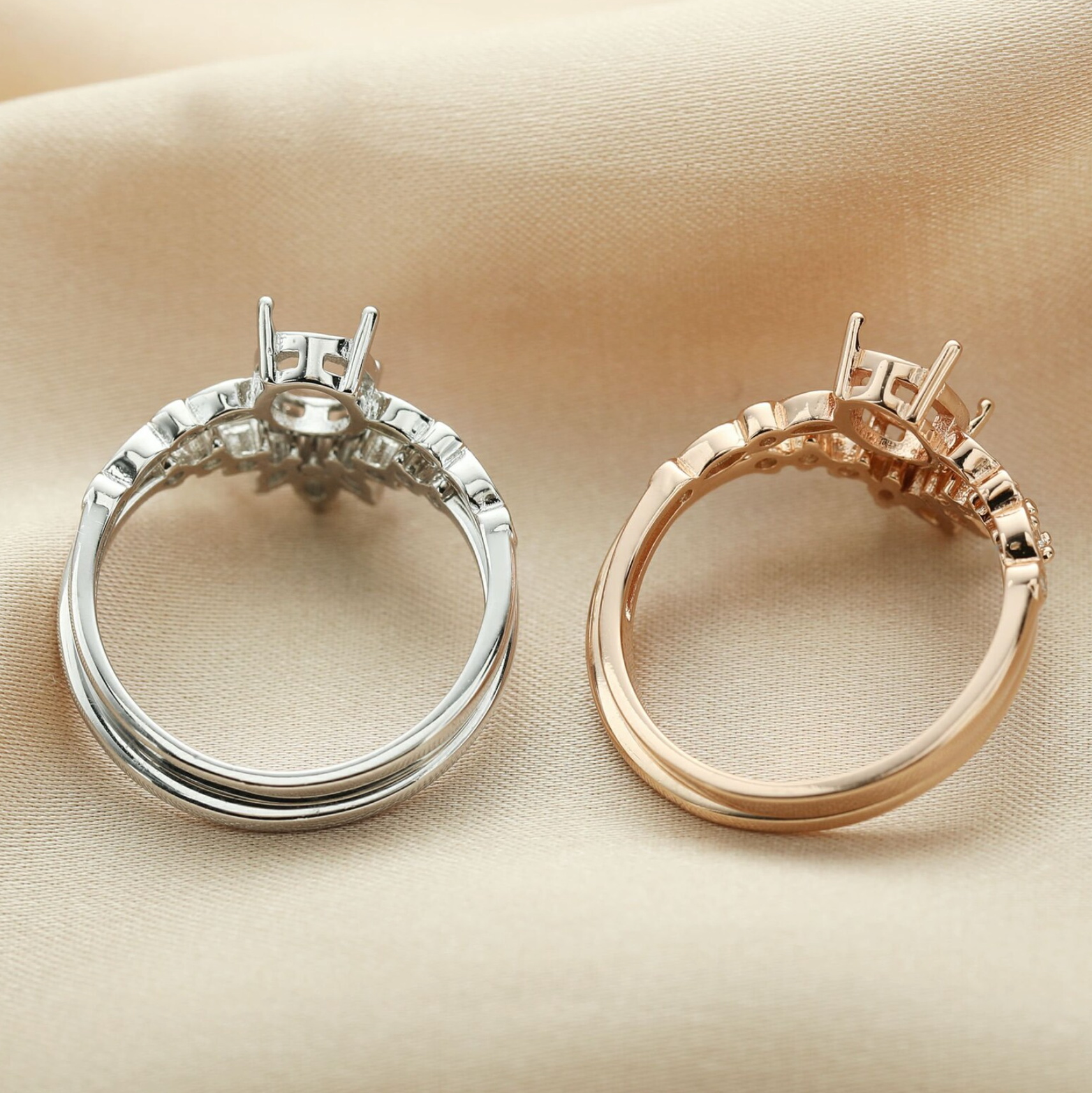 **Please note that gold and rose gold plating will naturally tarnish over time, which will turn back to silver color. To preserve its luster, we recommend gentle care and occasional re-plating. If this is something you wish to avoid, we recommend selecting a silver setting or check out our selection of solid gold settings.**